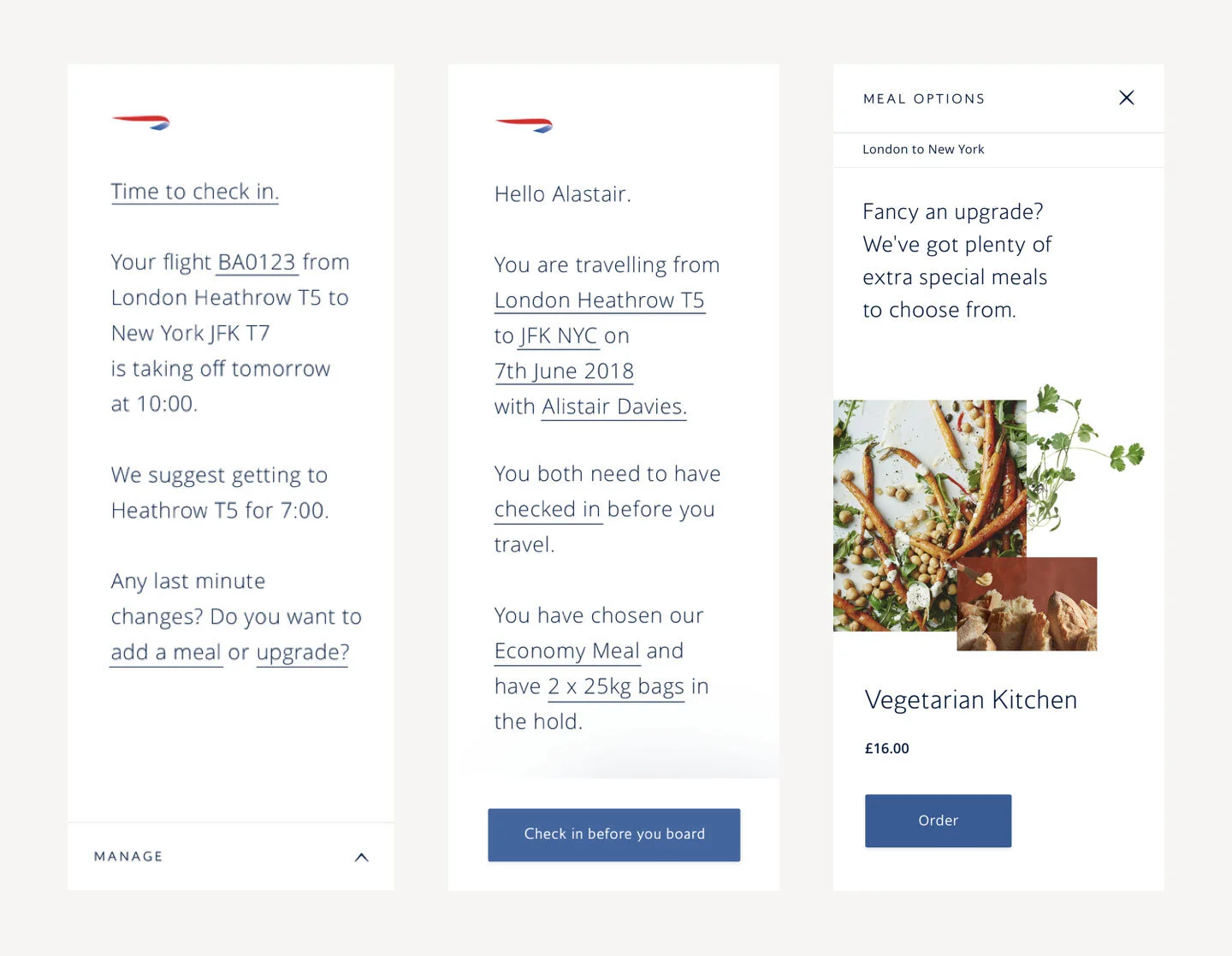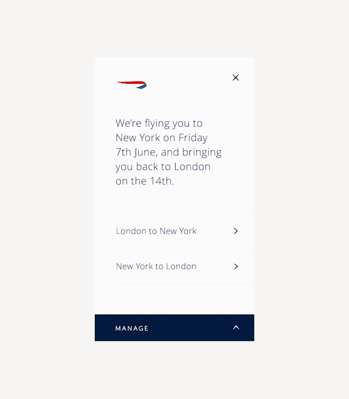 At British Airways, I was responsible for the BA post-booking experience - Manage My Booking. Welcome BA customers to get travel-ready with seamless and stress-free by providing the right information and service in the right way.
